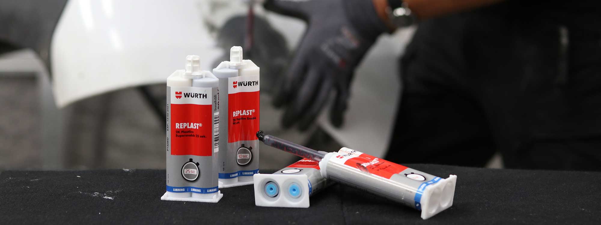 Inom vårt utbud för plastreparation har vi har bland annat vårt system Replast Easy som är ett komplett system för enkel och professionell reparation av plastdelar. Det har numera också en förbättrad formular som gör att vi kan undvika ämnen som misstänks orsaka luftvägssjukdomar och cancer.