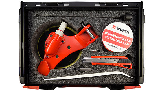 Ta bort vindrutan med perfekt resultat med demonteringssatsen Würth Mini som innehåller rätt verktyg för varje steg av borttagning av en vindruta.